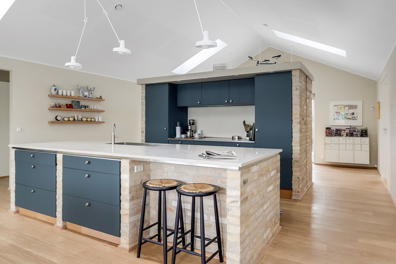 Midt i huset findes et arkitekttegnet køkken, der er en drøm for enhver madentusiast. Køkkenet har en stor corianbordplade på murede sokler og er med Quooker, nye eksklusive hvidevarer, inklusive dampovn. Det åbne køkkenalrum forbinder sig harmonisk med pejsestuen. Fra køkkenalrum og pejsestuen er der den smukkeste udsigt over Øhavet med Siø, Tåsinge og Thurø.