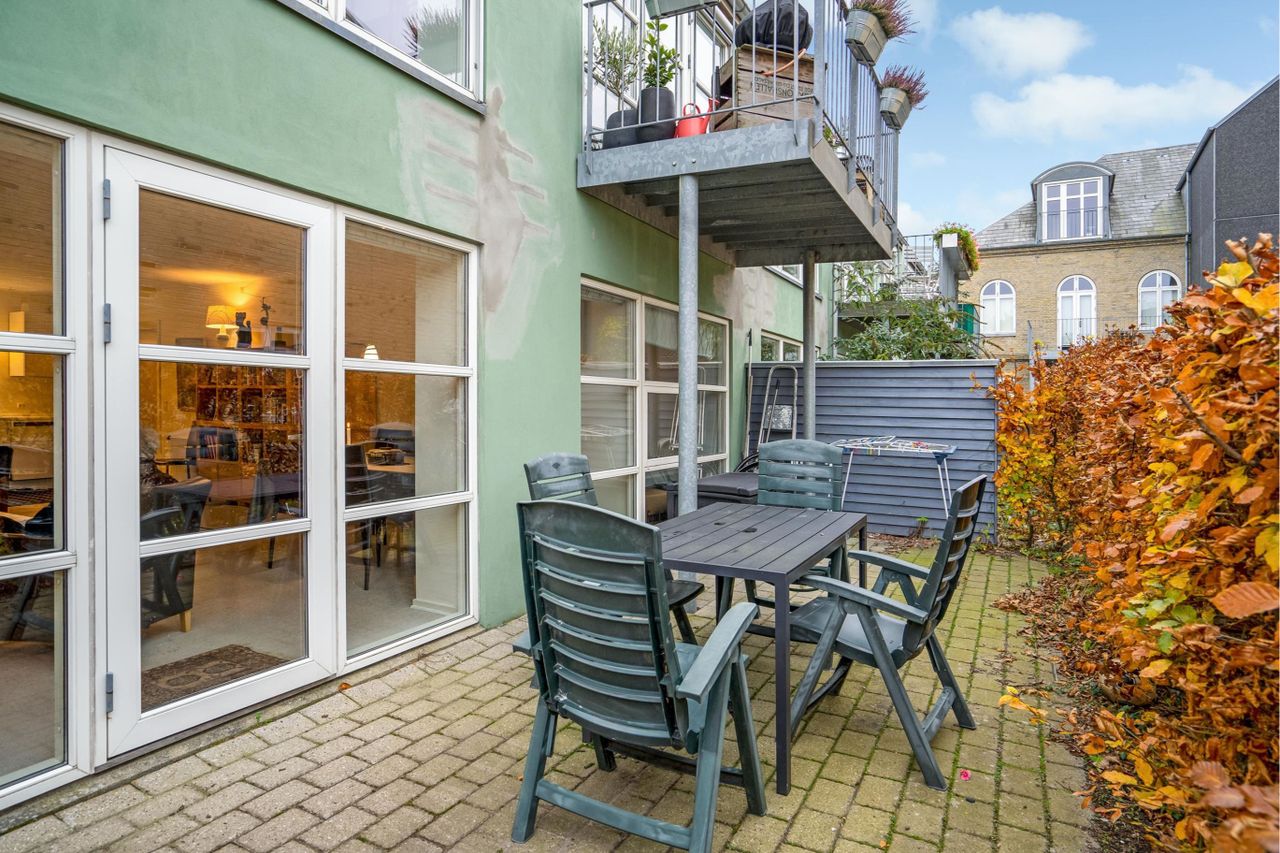 Velindrettet stuelejlighed med sydvendt terrasse og få skridt til vandet